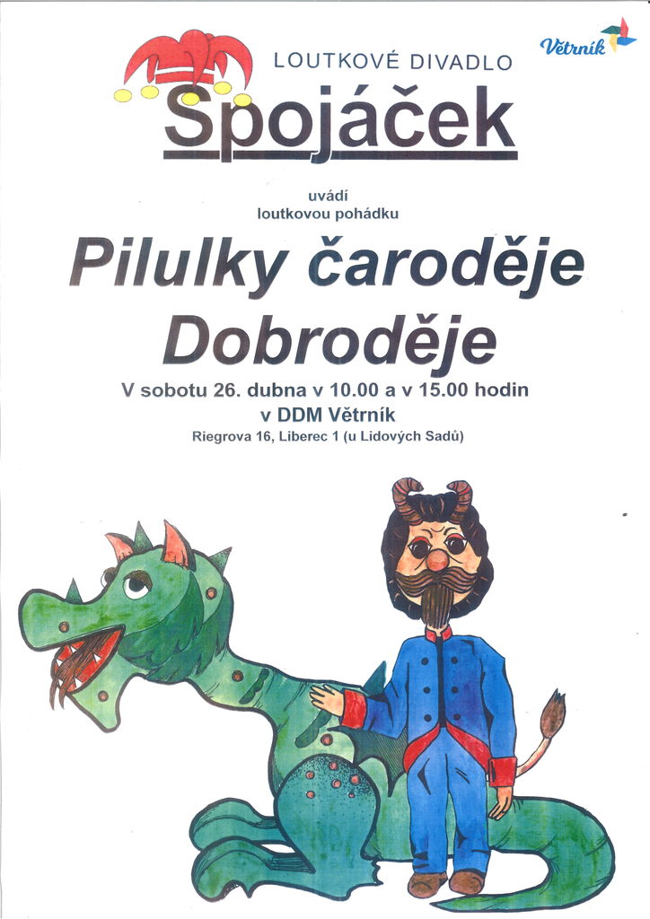 od 10:00 a od 15:00 v DDM Větrník Liberec (Riegrova 16), 3.p. Divadlo.