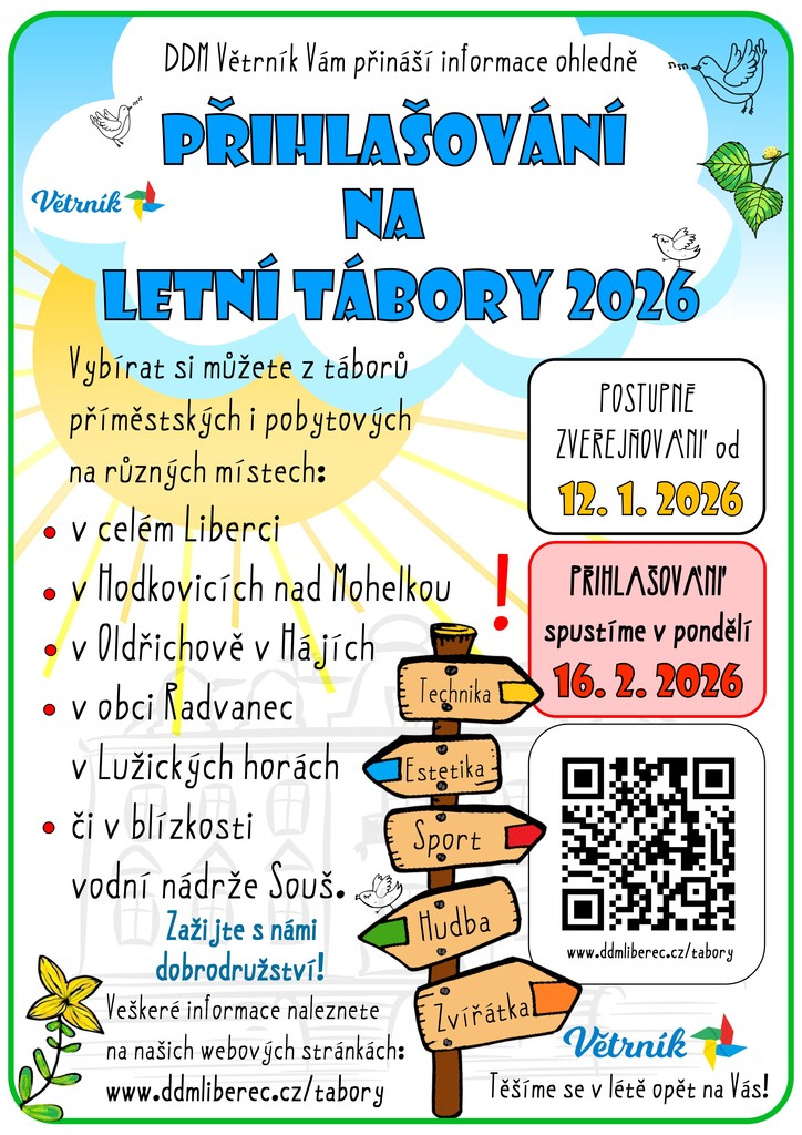 Přihlašování na léto následně spustíme v pondělí 16. února 2026