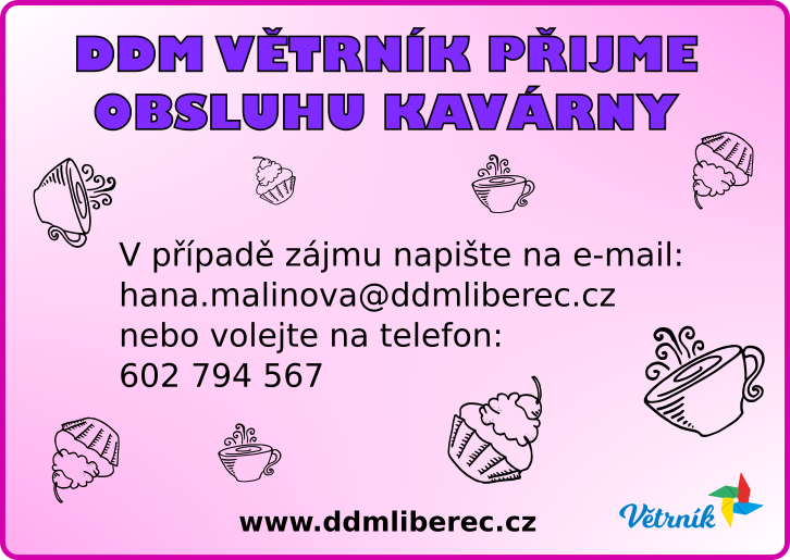 DDM Větrník příjme od 19.09. 2022 obsluhu kavárny: