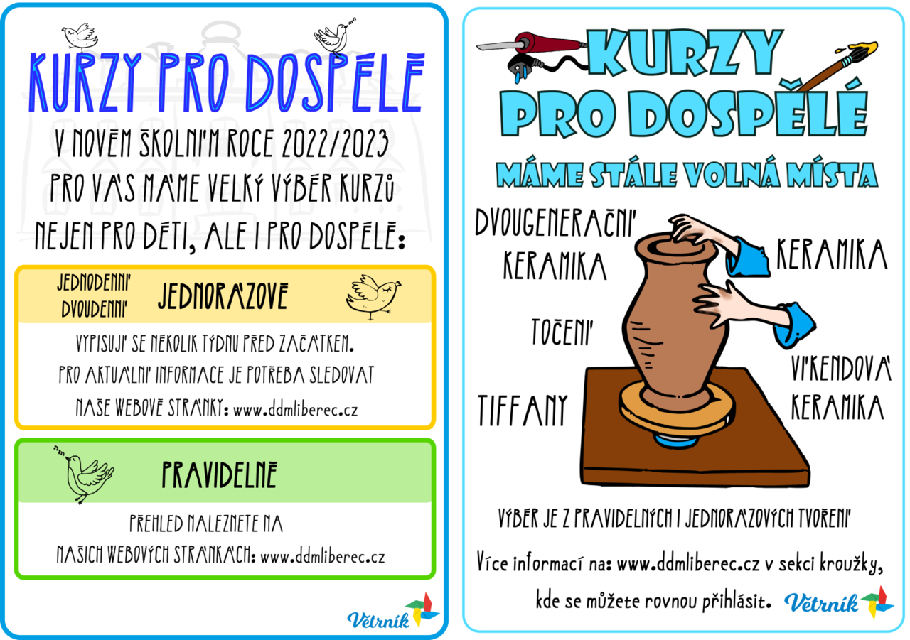 MÁME STÁLE PÁR VOLNÝCH MÍST V KURZECH PRO DOSPĚLÉ A KROUŽCÍCH PRO DVĚ GENERACE.