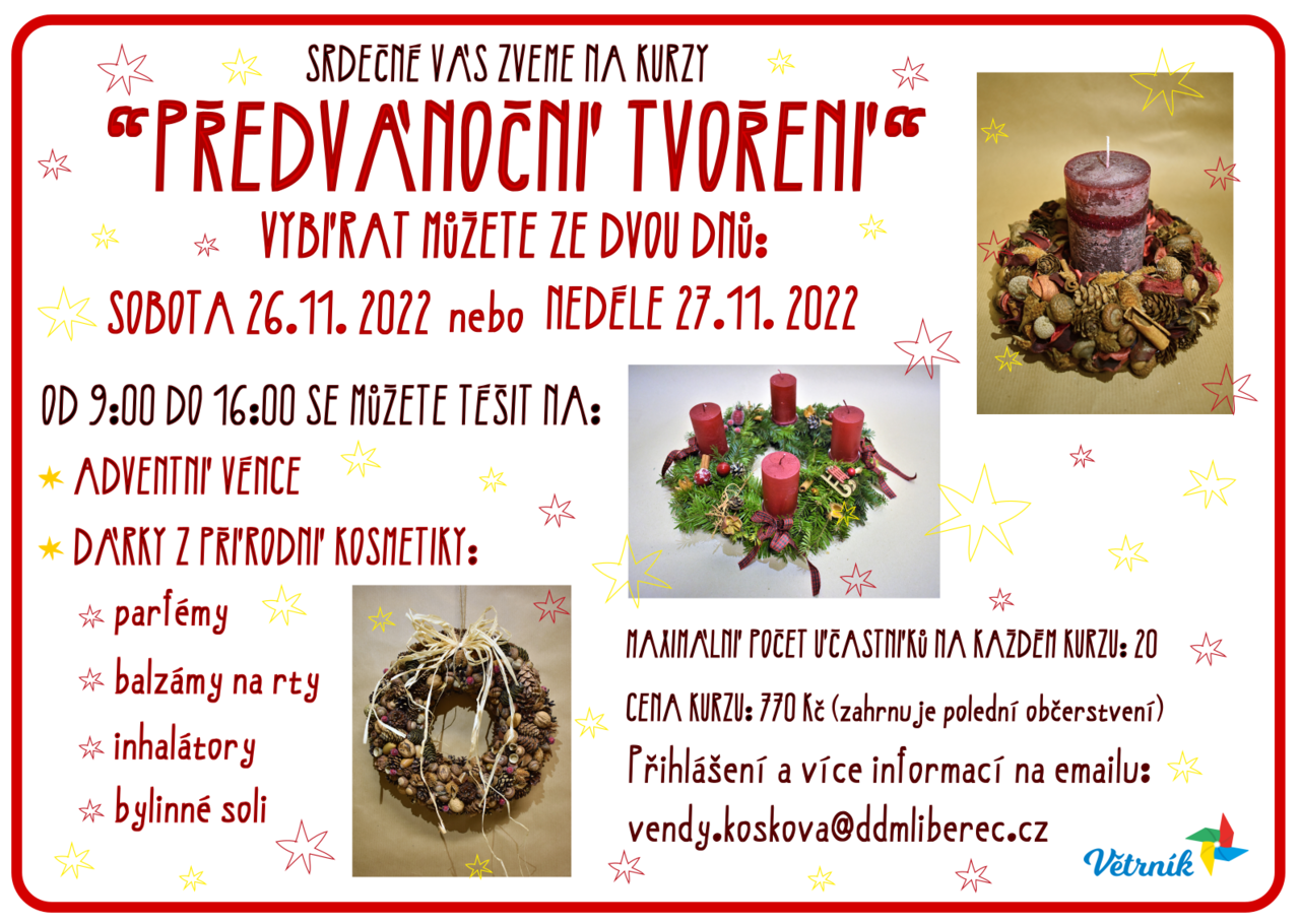 Přihlášení a více informací na : vendy.koskova@ddmliberec.cz