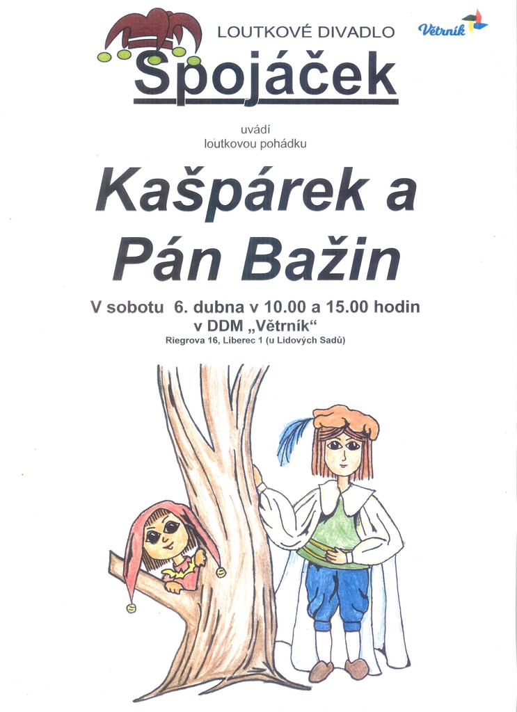 Od 10:00 a od 15:00 v DDM Větrník Liberec (Riegrova 16), 3.p. Divadýlko.