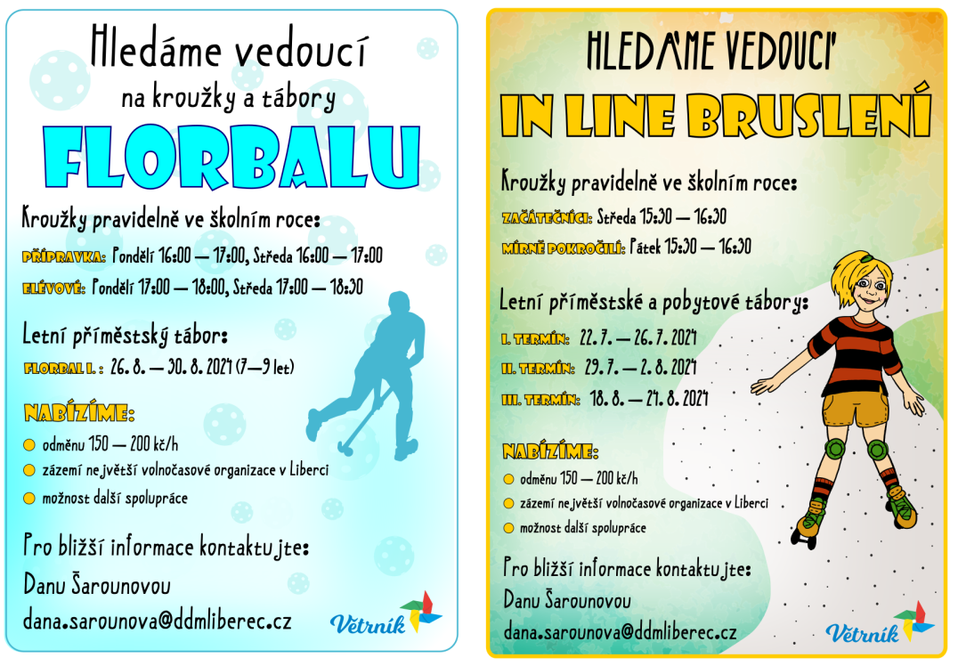 DDM VĚTRNÍK HLEDÁ VEDOUCÍ NA KROUŽKY A TÁBORY IN LINE BRUSLENÍ A FORBALU