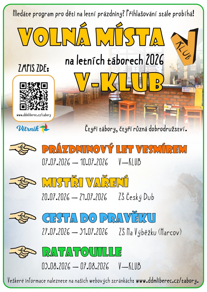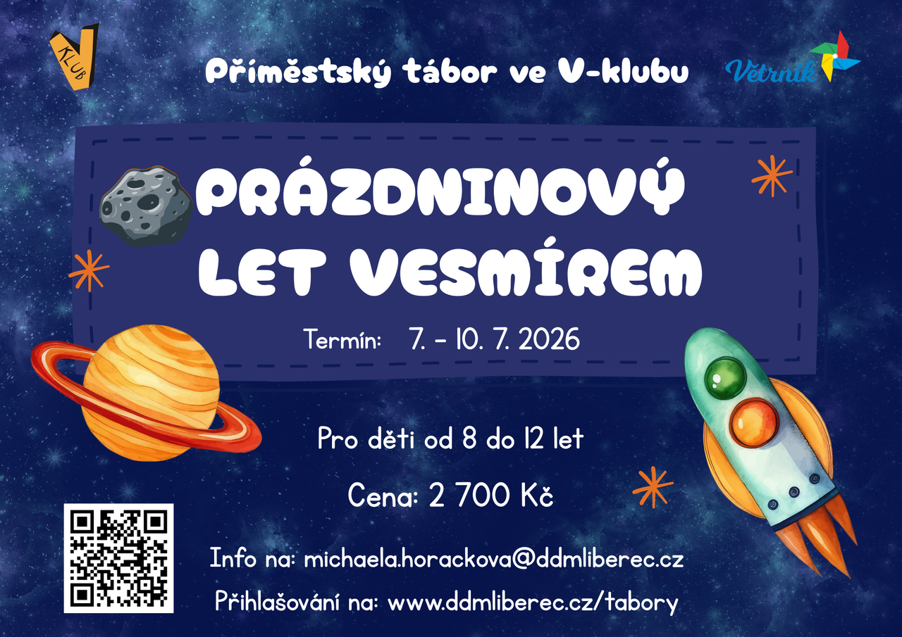 - PRÁZDNINOVÝ LET VESMÍREM od 7. 7. - 10. 7. 2026, místo konání: V-klub