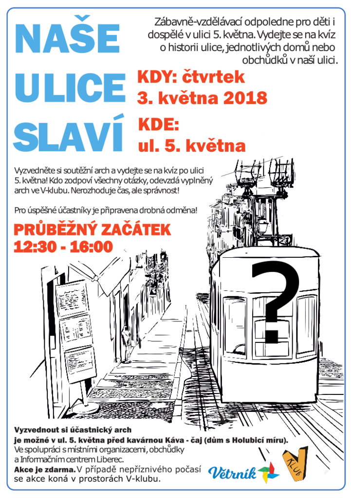 Přijďte ho s námi s předstihem oslavit již ve čtvrtek 3.května. V ulici 5.května bude rozmístěn kvíz, týkající se historie a této ulice.