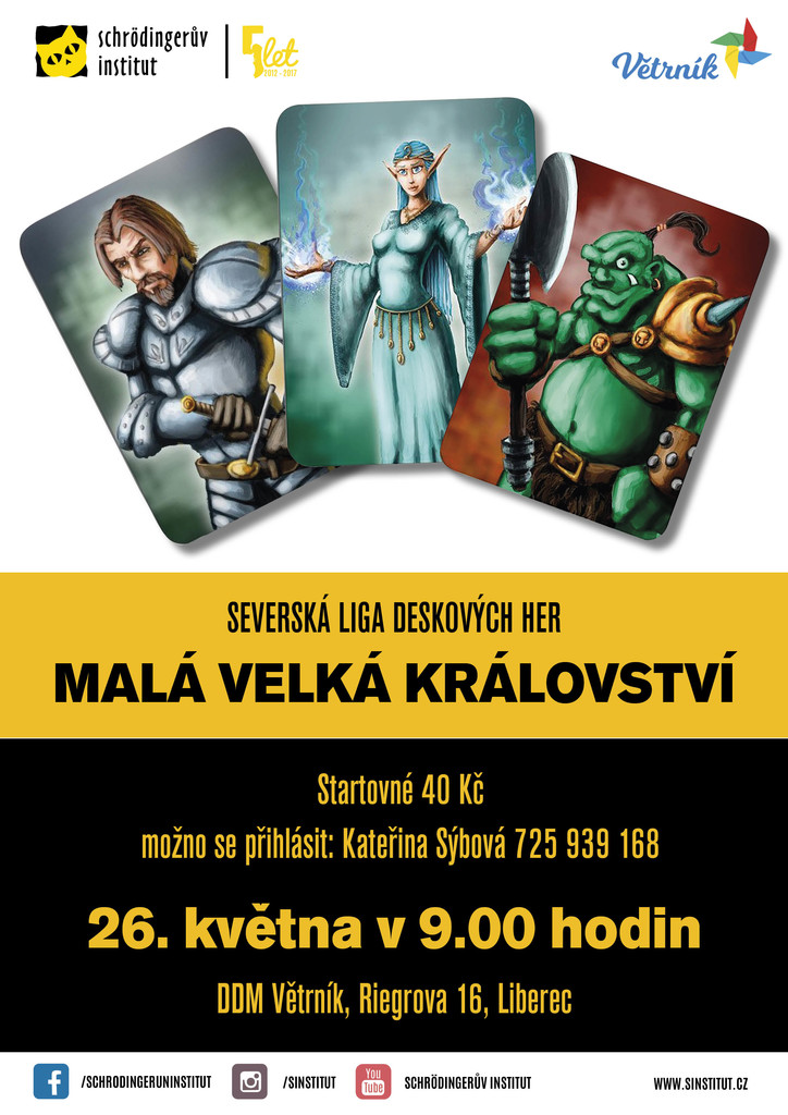 Přijďte si k nám zahrát na další turnaj, tentokrát budeme hrát MALÁ VELKÁ KRÁLOVSTVÍ! Turnaj je vhodný pro méně zkušené hráče i úplné začátečníky, děti od 8 let i dospělé (pravidla na začátku rádi vysvětlíme).