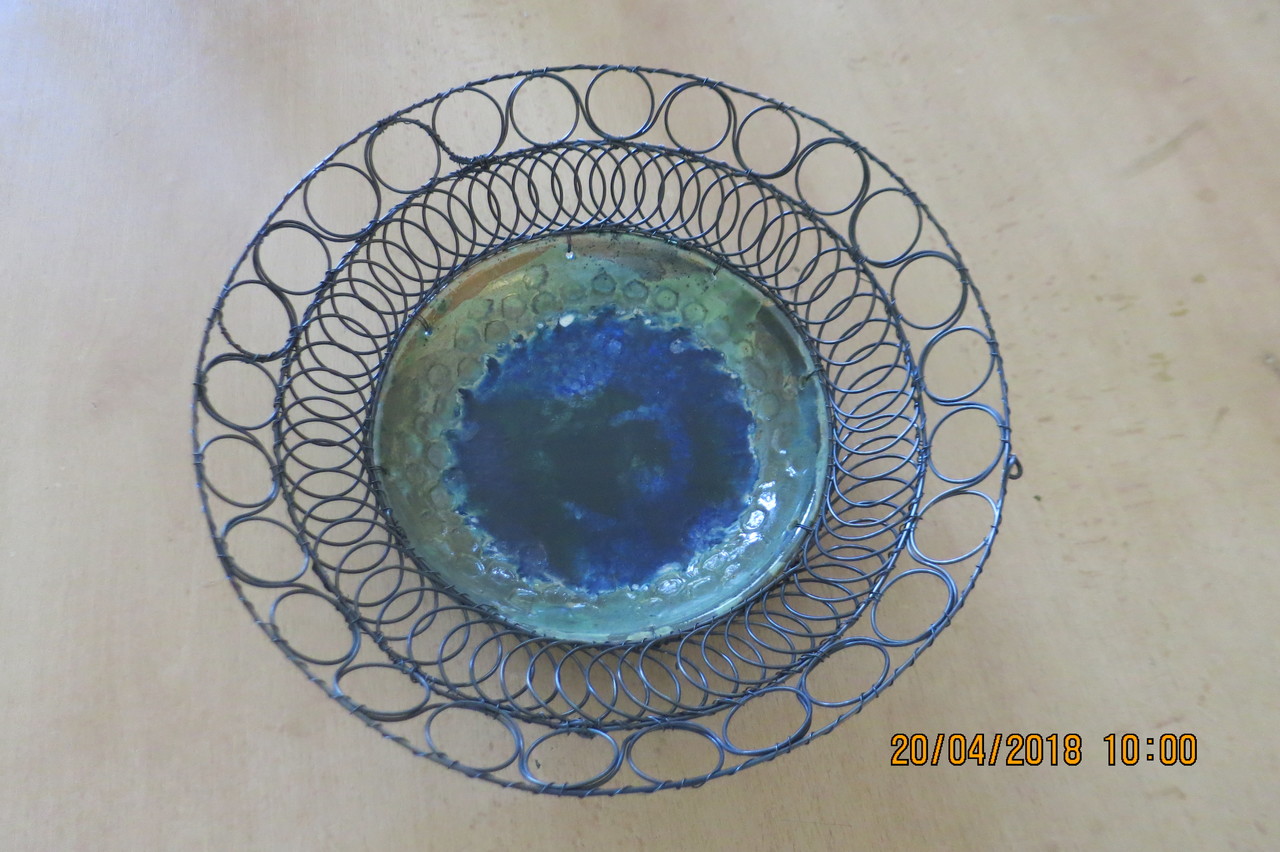 drátování - SLEPIČKA na keramické misce nebo miska doplněná drátem