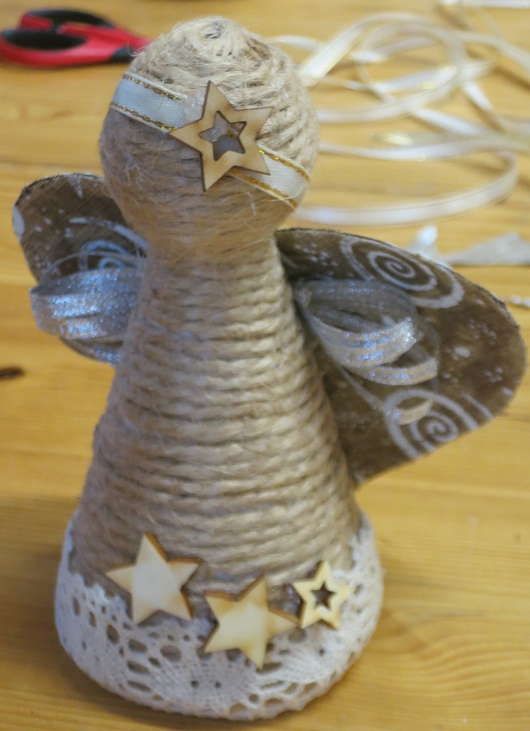 B) ANDÍLEK - základ polystyrenová figurka, přírodní provázek, další ozdůbky - šikovné děti od 7let, případně s dopomocí rodičů..