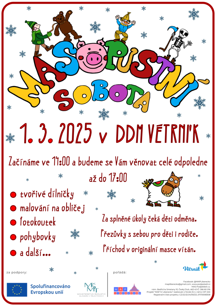 Srdečně vás zveme na úspěšnou akci pro rodiny s dětmi "Masopustní sobota".