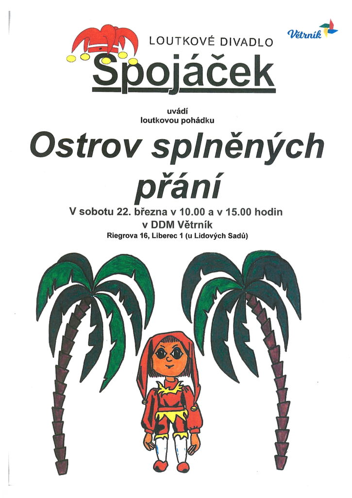 od 10:00 a od 15:00 v DDM Větrník Liberec (Riegrova 16), 3.p. Divadlo.