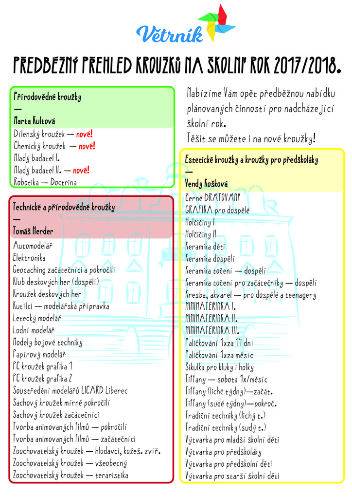 Předběžný přehled kroužků pro šk. rok 2017/18