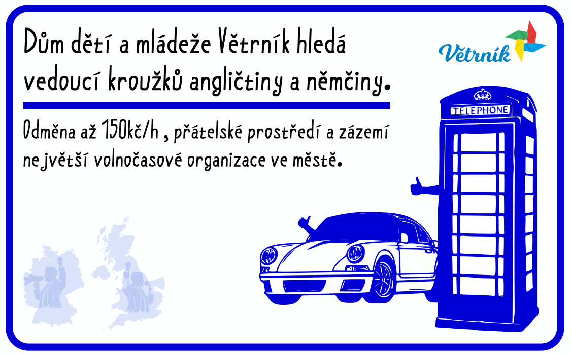 DDM Větrník hledá vedoucí kroužků anglického i německého jazyka (kapacita jednoho kroužku: max 6 dětí).