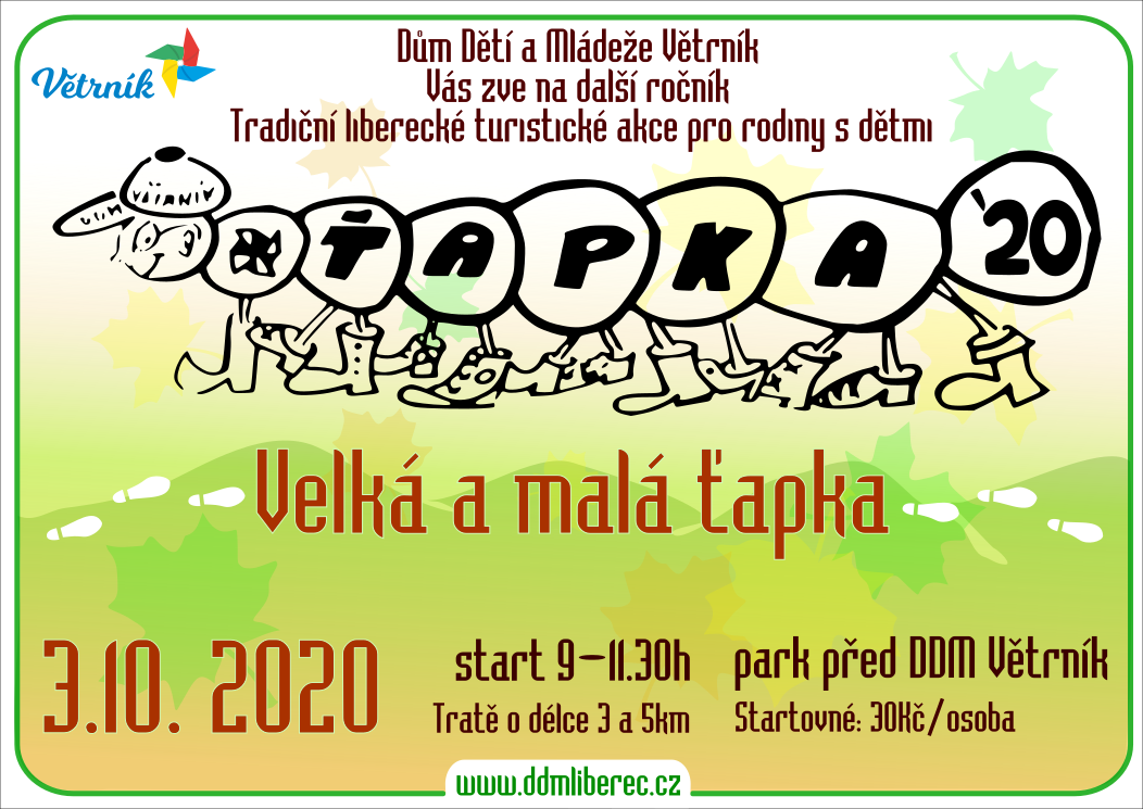 Dům dětí a mládeže Větrník Vás srdečně zve na tradiční turistickou akci pro rodiče a děti Velká a malá ťapka v podzimním lese 2020.
