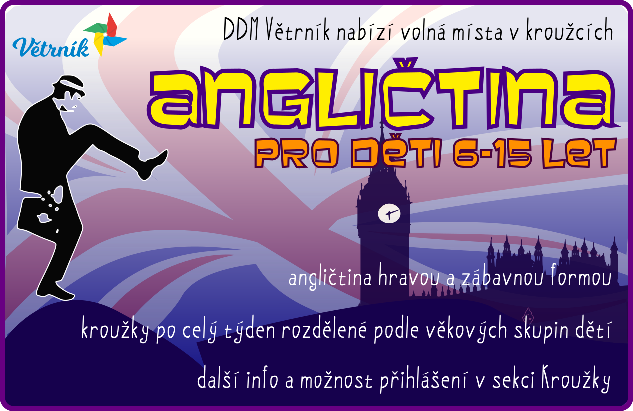 Otevřeli jsme pro Vás nové kroužky Angličtiny pro děti v různých dnech v týdnu a také zbrusu nový kroužek Lesní dobrodruzi pro všechny malé milovníky pobytu venku mezi stromy. :)