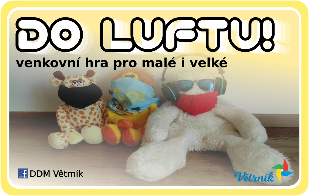 Tentokrát Vás bohužel nemůžeme pozvat nikam do luftu, neboť to momentální situace neumožňuje, ale ani to nás nezastaví a přinášíme tentokrát porci aktivit na doma pro všechny od nejmenších až po velké. Vyberte si na stránce https://www.ddmliberec.cz/akce-a-kurzy/do-luftu-/8-lockdown-special a pro svěží luft si prosíme otevřete okno. :)