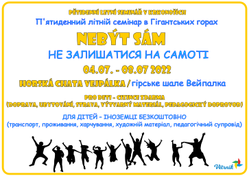 П'ятиденний літній семінар в Гігантських горах, гірське шале Вейпалка, з понеділка 4.7.2022 по п'ятницю 8.4.2022