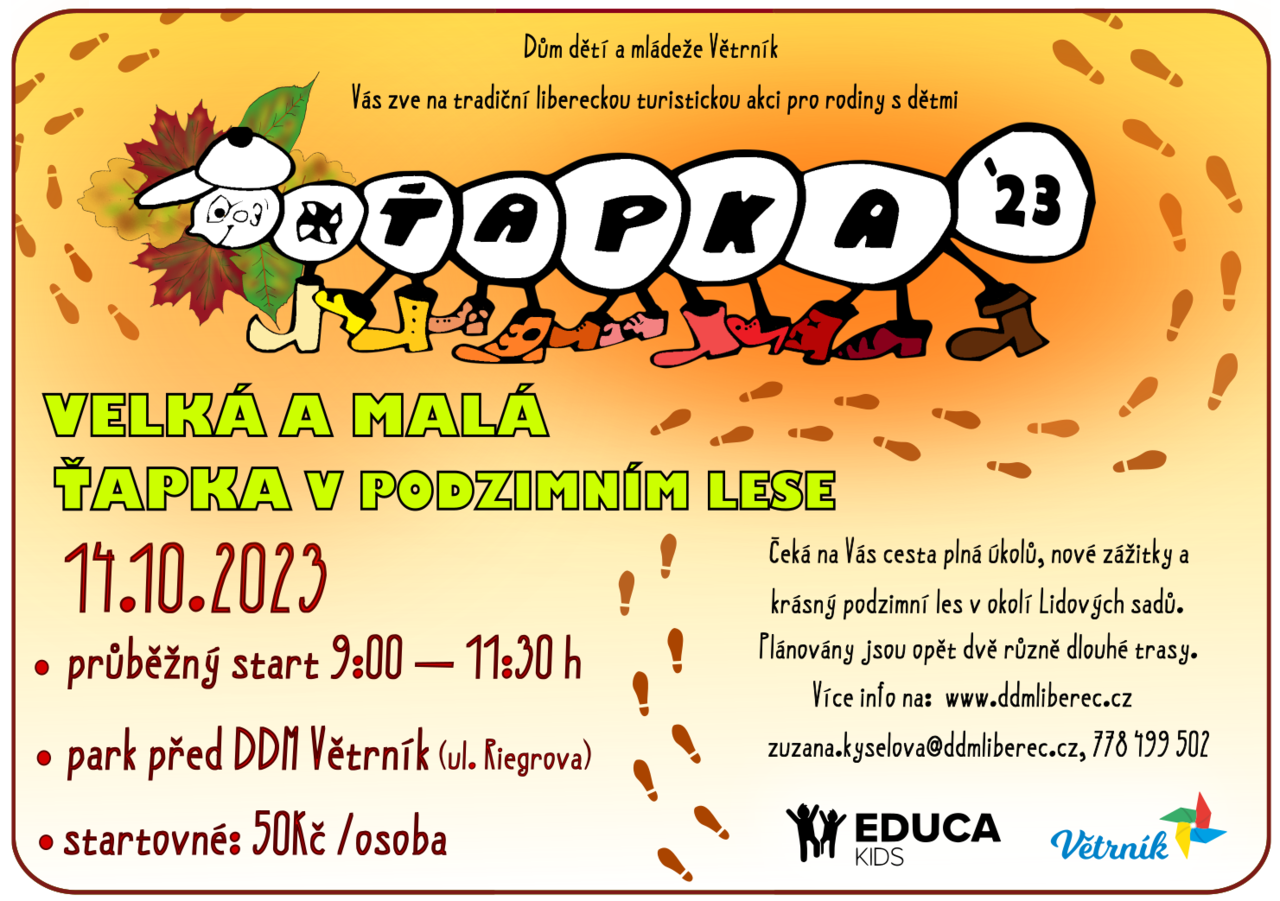 Srdečně Vás zveme na tradiční turistickou akci Velká a malá ťapka v podzimním lese.