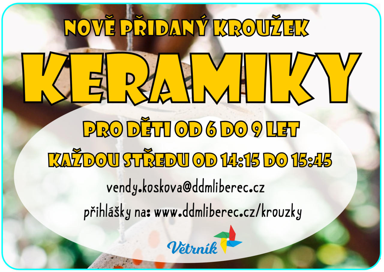 Přihlášky a více info tu: https://www.ddmliberec.cz/krouzky/id:90128/1-8-krouzek-keramiky-st