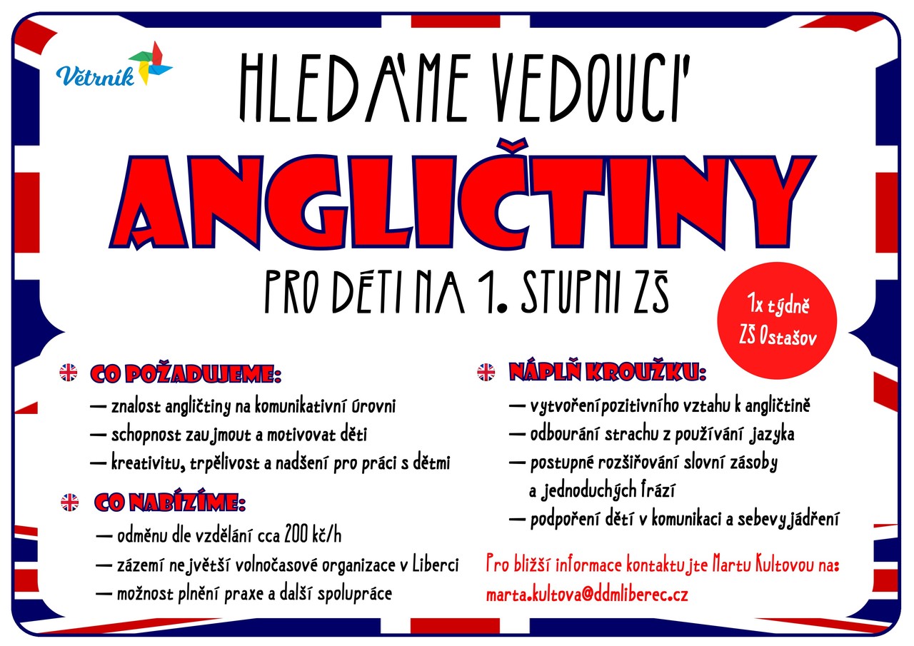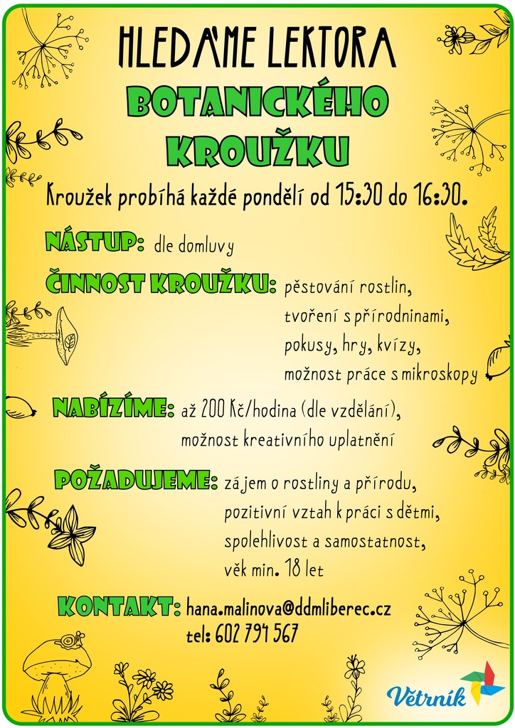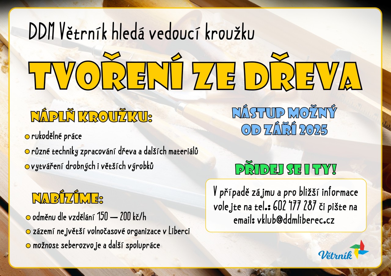 DDM VĚTRNÍK HLEDÁ NOVÉ VEDOUCÍ a LEKTORY na různorodé kroužky!