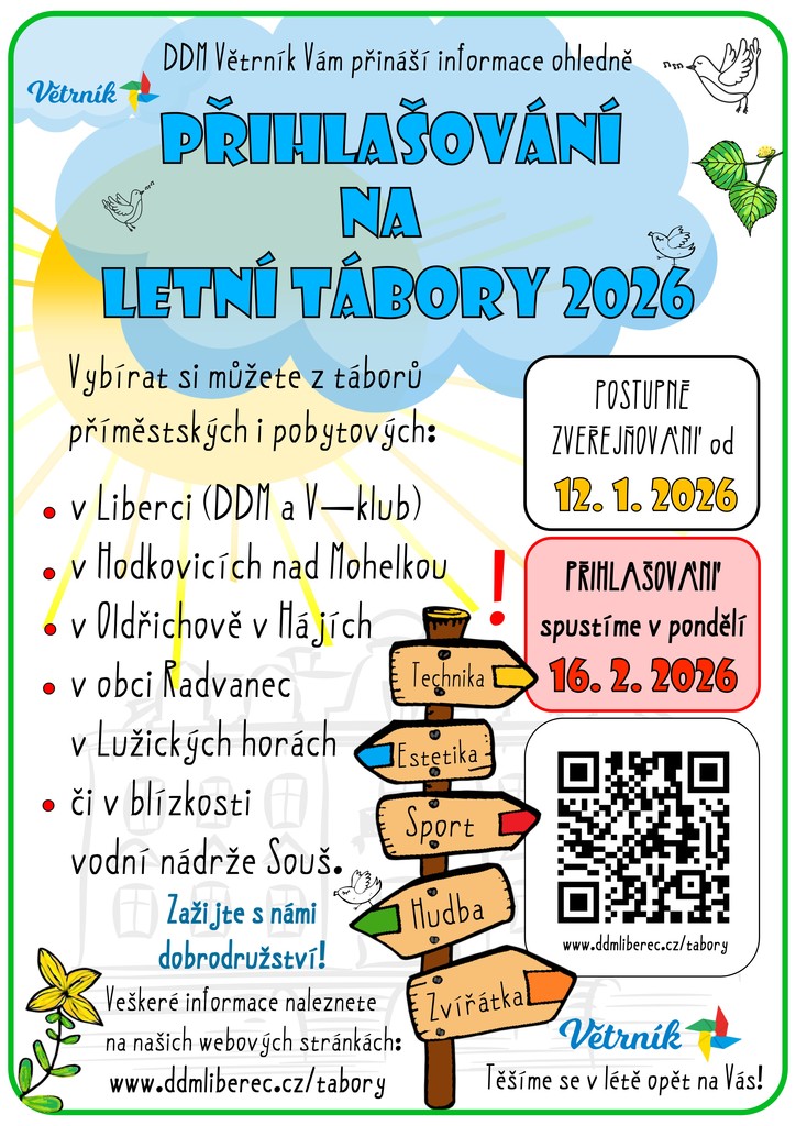 Přihlašování na léto následně spustíme v pondělí 16. února 2026
