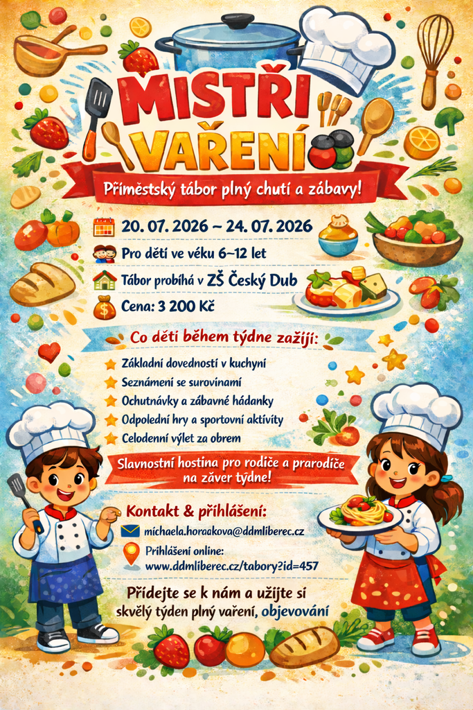 - MISTŘI VAŘENÍ od 20. 7. - 24. 7. 2026, místo konání: ZŠ Český Dub