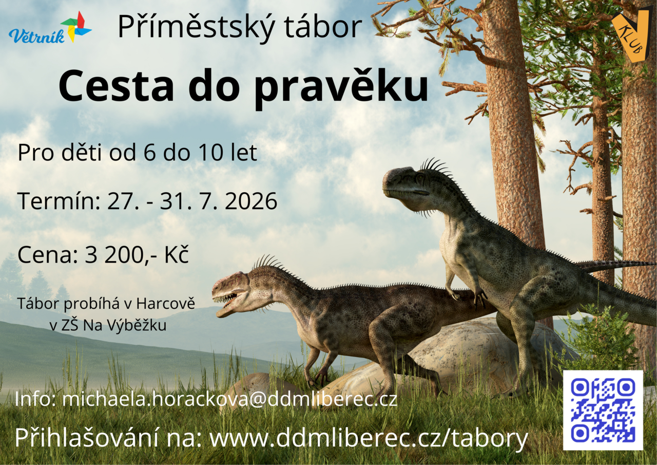 - CESTA DO PRAVĚKU od 27. 7. - 31. 7. 2026, místo konání: ZŠ Na Výběžku (Harcov)