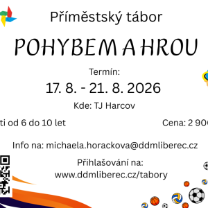 Chcete zajistit svým dětem během prázdnin zajímavý a zábavný program plný pohybu? Máme pro Vás příměstský tábor „Všehochuť“, na kterém si děti vyzkouší od každého něco. Různé sportovní aktivity, hry, výtvarka… a k tomu výlety po krásných místech Liberce a okolí. Užijeme si spolu krásný týden, plný nových přátelství.