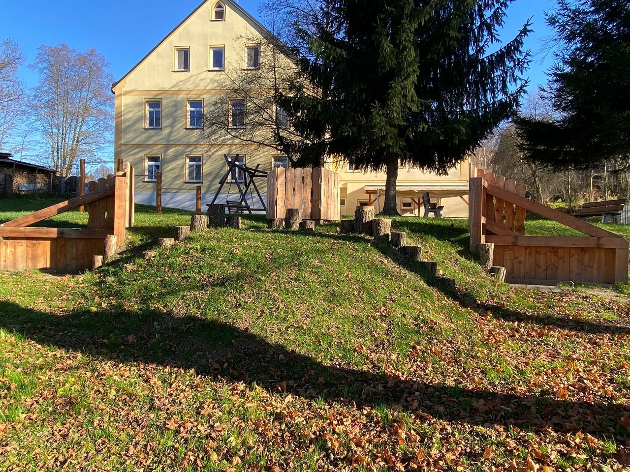 V areálu naleznete krom chalupy i zahradu s venkovním posezením, víceúčelové podium, ohniště a houpačky. Vše obklopené loukami a bukovými lesy.