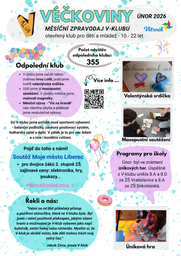Měsíční zpravodaj z V-klubu - o tom jsme dělali, kdo nás navštívil nebo co nás čeká. :)